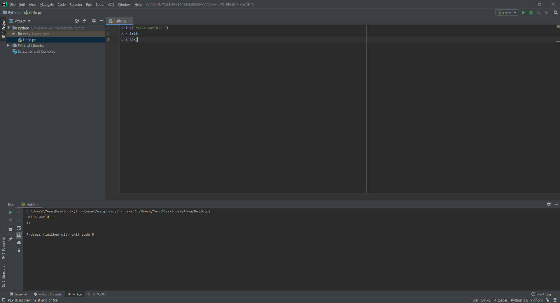 프로젝트 내부에 .py 파일을 새로 생성해주세요.