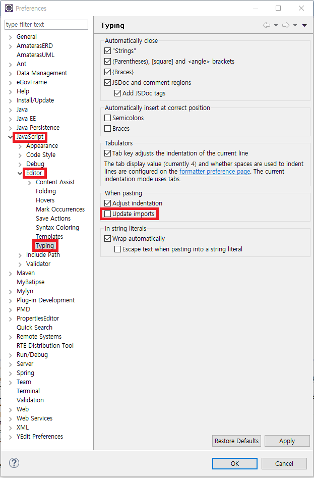 이클립스에서 자바스크립트를 복사, 붙여 넣기 하는 동안에 잠깐 프리징이 걸리는 현상 해결법을 기록하려 합니다.