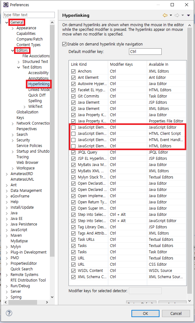 마찬가지로 Window > Preferences에서 아래와 같이 설정해주세요.