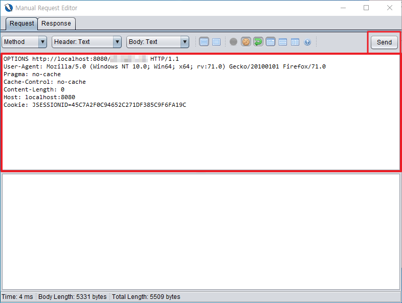 2. 요청 편집기에서 요청 헤더를 수정한 뒤 보내기를 눌러주세요.