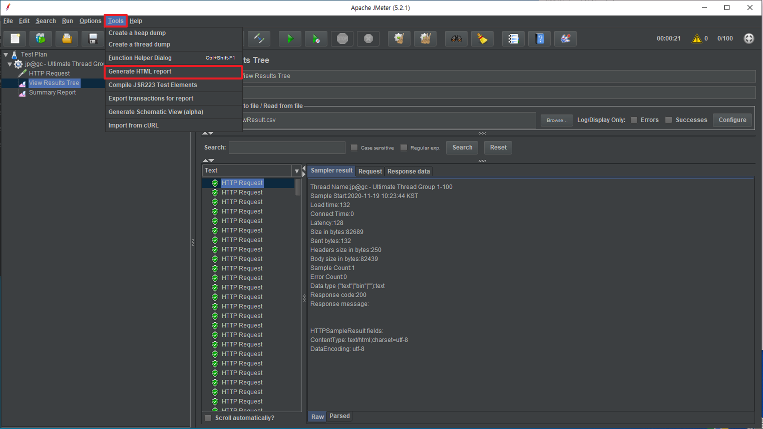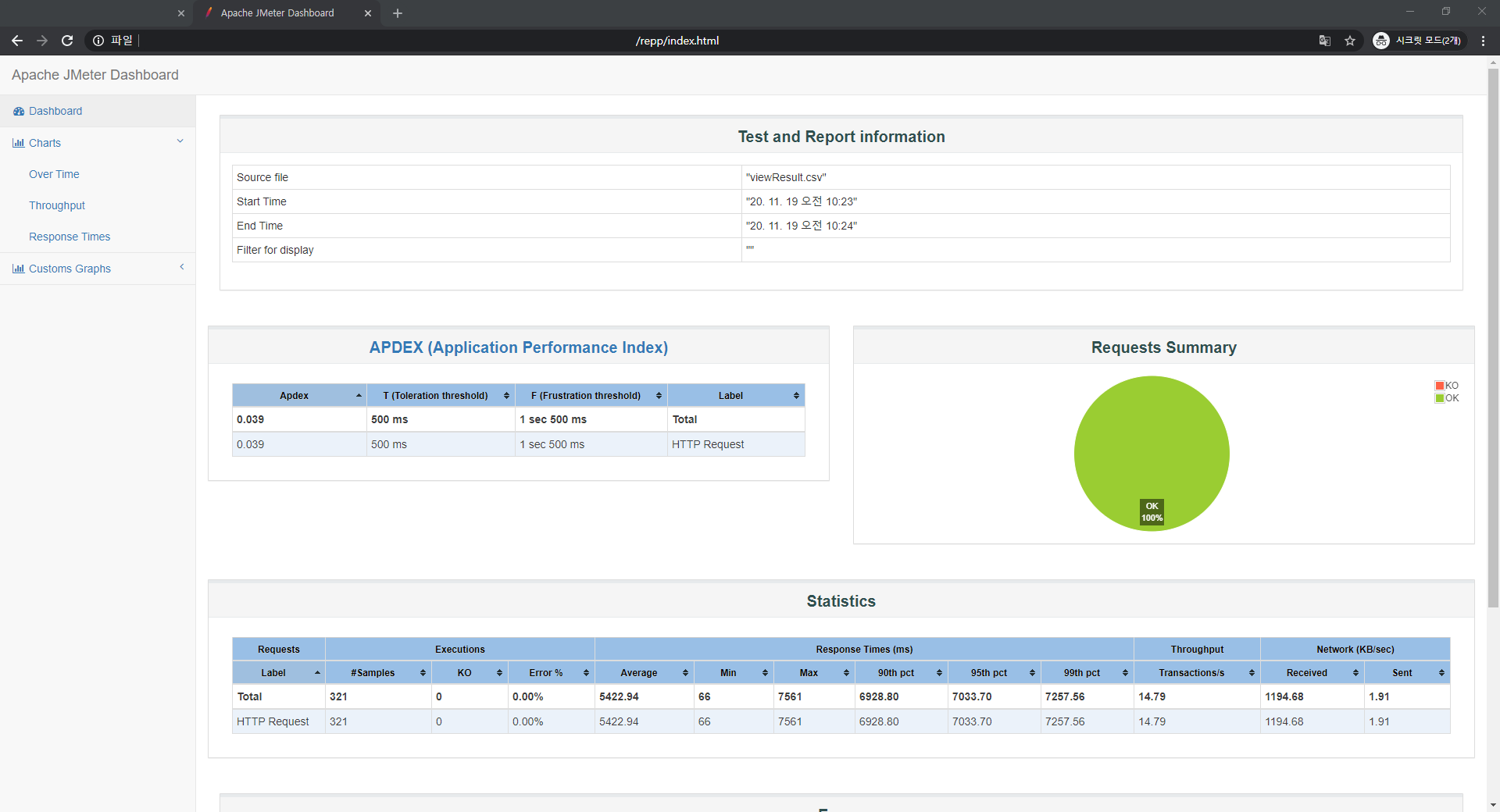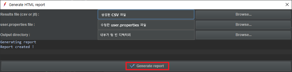 JMeter에서 측정한 지표와 값을 HTML로 작성된 DashBoard로 출력하는 방법을 기록합니다.(참조)