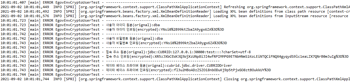 LOGGER.error(label+" 인코딩(encrypted):" + cryptoService.encrypt(arrCryptoString[i]));