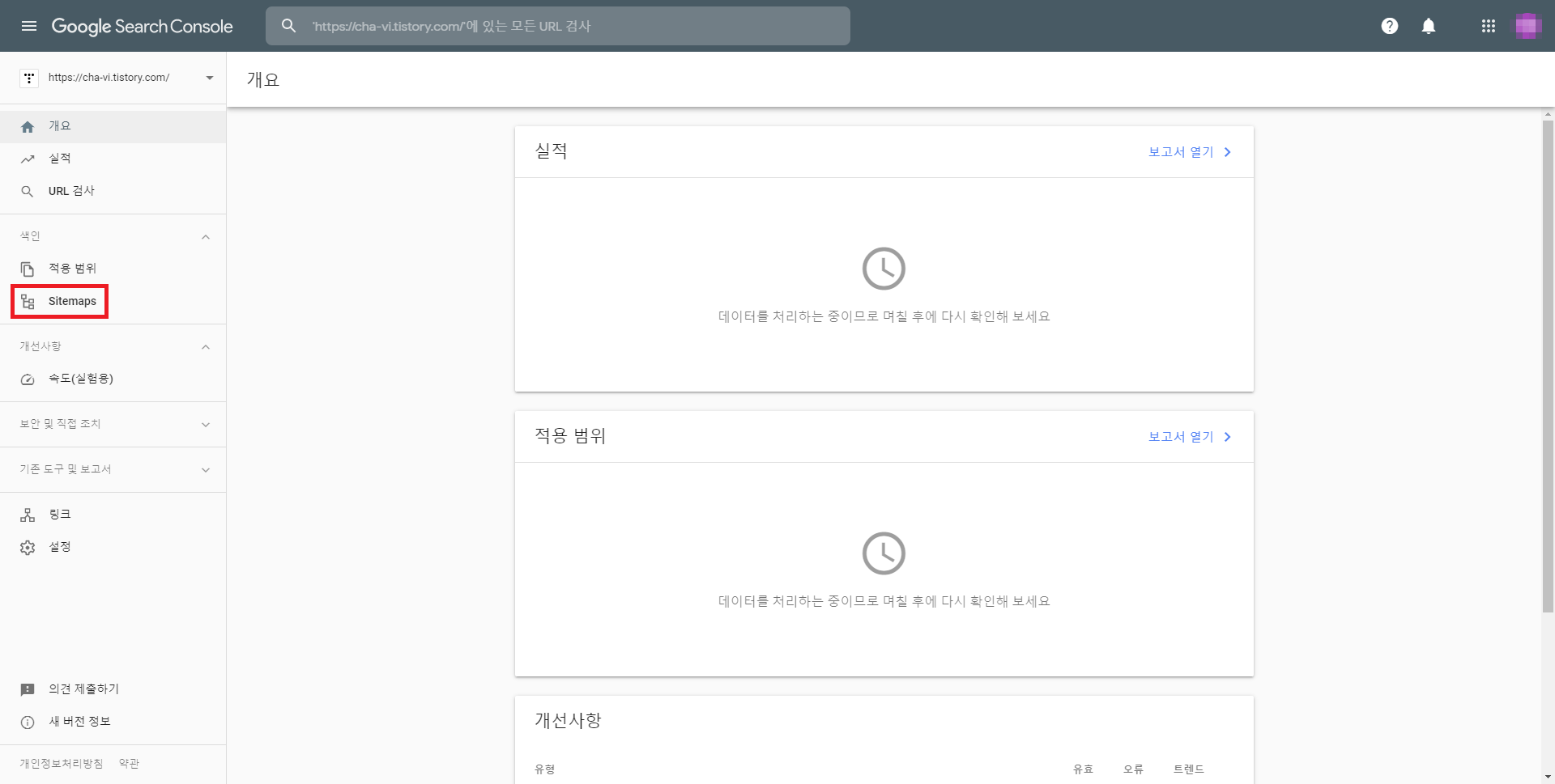 새 사이트맵 추가 입력창에 티스토리 블로그의 RSS 주소를 입력 후 제출합니다.